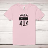 World's Okayest Mum Adult T-ShirtA novelty unisex adult t-shirt with 'World's Okayest Mum' printed across the front of a 100% cotton* t-shirt. This novelty t-shirt is great as a gift for any occasion.All of our unisex adult t-shirts are designed and hand-printed in the UK and are manufactured from 100% ringspun cotton for a premium quality feel and feature double-stitched waist hem and sleeves, seamless double-needle collar, taped neck and shoulders, and a tubular body that has been quarter turned to avoid a centre crease; available in sizes from Extra Small to 4XL*. *Black & White tees available in sizes XS - 4XL, all other colours available XS - 2XL Size GuideUnisex adult t-shirts are measured across the chest, in inchesXS 30/32'S 34/36'M 38/40'L 42/44'XL 46/48'2XL 50/52'3XL 54/56'4XL 58/60'See more on our clothing size guide (opens in new tab)Please NoteAll of our items are hand-printed to order, as a result, colours may vary between prints - images are for illustration purposes only.Show more products with the World's Okayest Mum design
