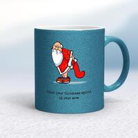 Stick Your Christmas Spirit Up Your Arse MugA rude mug with a drunk Santa shitting in a stocking graphic with the phrase 'Stick Your Christmas Spirit Up Your Arse' printed on both sides. Simple and straight to the point this rude mug is great as a gift for any occasion.Our Stick Your Christmas Spirit Up Your Arse mug is hand-printed on both sides (front/back) of a high-quality mug and available in a variety of styles and colours. Choose from A classic ceramic mug in white glossVibrantly coloured inner and matching handle mugsGold or silver sparkling pearl finish mugsGold, silver, pink or blue glitter mugsPremium satin mugs in a choice of colours.Please NoteAll of our items are hand-printed to order, as a result, colours may vary between prints - images are for illustration purposes only.