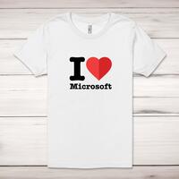 I Love Microsoft Adult T-ShirtA geeky unisex adult t-shirt with 'I Love Microsoft' printed across the front of a 100% cotton* t-shirt. This geeky t-shirt is great as a gift for any occasion.All of our adult t-shirts are designed and hand-printed in the UK and are manufactured from quality 100% combed and ringspun cotton for superior softness and comfort. This updated unisex essential fits like a well-loved favorite; featuring a crew neck, short sleeves, retail fit, unisex sizing, sideseams and shoulder taping. Available in sizes from Extra Small to 4XL*.*Black & White tees available in sizes XS - 4XL, all other colours available XS - 2XLSize GuideUnisex adult t-shirts are measured around the chest, in inchesXS 32/34'S 34/36'M 38/40'L 42/44'XL 46/48'2XL 50/52'3XL 54/56'4XL 58/60'See more on our clothing size guide (opens in new tab)Please NoteAll of our items are hand-printed to order, as a result, colours may vary between prints - images are for illustration purposes only.Show more products with the I Love Microsoft design