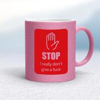 Stop MugA rude mug with 'Stop I Really Don't Give A Fuck' printed on both sides. Simple and straight to the point this rude mug is great as a gift for any occasion.Our Stop mug is hand-printed on both sides (front/back) of a high-quality mug and is available in a variety of styles and colours. Choose from A classic ceramic mug in white glossVibrantly coloured inner and matching handle mugsGold or silver sparkling pearl finish mugsGold, silver, pink or blue glitter mugsPremium satin mugs in a choice of colours.Please NoteAll of our items are hand-printed to order, as a result, colours may vary between prints - images are for illustration purposes only.