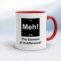 Meh! The Element Of Indifference MugA geeky mug with 'Meh! The Element Of Indifference' printed on both sides. Simple and straight to the point this geeky mug is great as a gift for any occasion.Our Meh! The Element Of Indifference mug is hand-printed on both sides (front/back) of a high-quality mug and is available in a variety of styles and colours. Choose from A classic ceramic mug in white glossVibrantly coloured inner and matching handle mugsGold or silver sparkling pearl finish mugsGold, silver, pink or blue glitter mugsPremium satin mugs in a choice of colours.Please NoteAll of our items are hand-printed to order, as a result, colours may vary between prints - images are for illustration purposes only.Show more products with the Meh! The Element Of Indifference design