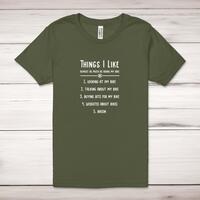 Priceop.com : things i like my bike adult t-shirt - military green, small Priceop.com : things i like my bike adult t-shirt - military green, small