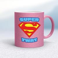 Super Twat MugA rude mug with 'Super Twat' printed on both sides. Simple and straight to the point this rude mug is great as a gift for any occasion.Our Super Twat mug is hand-printed on both sides (front/back) of a high-quality mug and available in a variety of styles and colours. Choose from A classic ceramic mug in white glossVibrantly coloured inner and matching handle mugsGold or silver sparkling pearl finish mugsGold, silver, pink or blue glitter mugsPremium satin mugs in a choice of colours.Please NoteAll of our items are hand-printed to order, as a result, colours may vary between prints - images are for illustration purposes only.