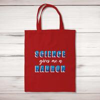 Science Gives Me A Hadron Tote BagA geeky shopping bag with 'Science Gives Me A Hadron' printed on the front of a 100% cotton tote bag. This geeky bag is a perfect replacement for plastic bags in retail, supermarkets and any other kinds of stores. Reusable, sustainable and multifunctional. 100% 150gsm Cotton10 litre capacity38 x 42 cmLong handled shopper, for easy use over the shoulderAvailable in a range of coloursDesigned and hand-printed in the UKPlease NoteAll of our items are hand-printed to order, as a result, colours may vary between prints - images are for illustration purposes only.