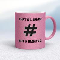 Sharp Not Hashtag MugA novelty mug with 'That's A Sharp Not A Hashtag' printed on both sides. Simple and straight to the point this novelty mug is great as a gift for any occasion.Our Sharp Not Hashtag mug is hand-printed on both sides (front/back) of a high-quality mug and is available in a variety of styles and colours. Choose from A classic ceramic mug in white glossVibrantly coloured inner and matching handle mugsGold or silver sparkling pearl finish mugsGold, silver, pink or blue glitter mugsPremium satin mugs in a choice of colours.Please NoteAll of our items are hand-printed to order, as a result, colours may vary between prints - images are for illustration purposes only.