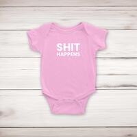 Shit Happens BabygrowSuper soft and stretchy 100% cotton, short sleeve, babygrow / romper suit / sleepsuit with poppers for ease of dressing. Printed with 'Shit Happens' across the front of the garment.Machine washableFabric: 100% CottonSize GuideMeasurements in cm relate to baby's height0/3mths: - 53-60cm 3/6mths: - 60-66cm 6/12mths: - 66-76cm See more on our clothing size guide (opens in new tab)Please NoteAll of our items are hand-printed to order, as a result, colours may vary between prints - images are for illustration purposes only.