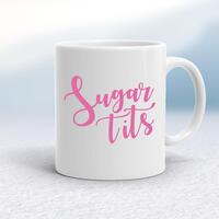 Sugar Tits MugA rude mug with 'Sugar Tits' on both sides. Simple and straight to the point this rude mug is great as a gift for any occasion.Our Sugar Tits mug is hand-printed on both sides (front/back) of a high-quality mug and available in a variety of styles and colours. Choose from A classic ceramic mug in white glossVibrantly coloured inner and matching handle mugsGold or silver sparkling pearl finish mugsGold, silver, pink or blue glitter mugsPremium satin mugs in a choice of colours.Please NoteAll of our items are hand-printed to order, as a result, colours may vary between prints - images are for illustration purposes only.