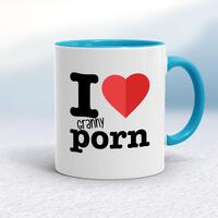 I Love Granny Porn Mug\nA rude mug with "I Love Granny Porn" printed on both sides. Simple and straight to the point this rude mug is great as a gift for any occasion.\nOur I Love Granny Porn mug is hand-printed on both sides (front/back) of a high-quality mug and is available in a variety of styles and colours. \nChoose from A classic ceramic mug in white glossVibrantly coloured inner and matching handle mugsGold or silver sparkling pearl finish mugsGold, silver, pink or blue glitter mugs\n\n\n\nPlease Note\nAll of our items are hand-printed to order, as a result, colours may vary between prints - images are for illustration purposes only.\n
